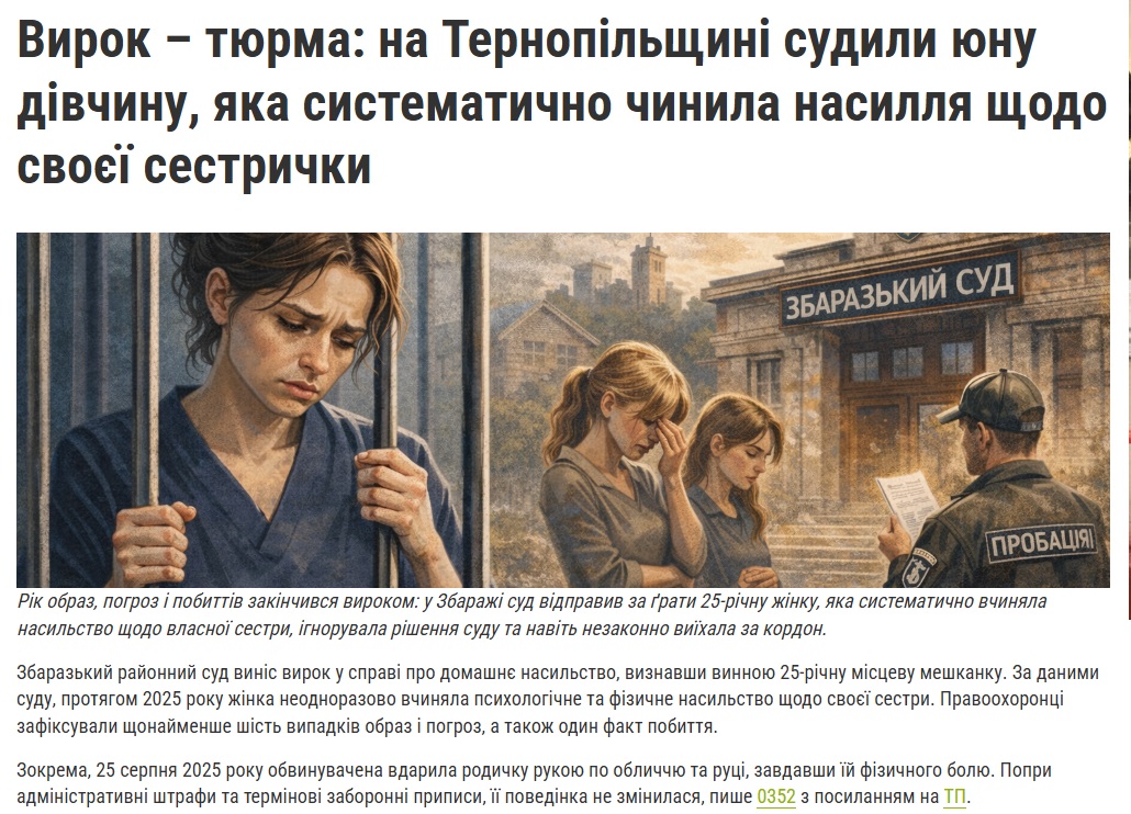 На сайті “0352.ua” новин із вказаними джерелами фото було п’ять — новини поліції і надзвичайників. Цікаво, що у двох матеріалах про суди ілюстраціями були зображення, згенеровані штучним інтелектом, хоча про це ніде не було зазначено.