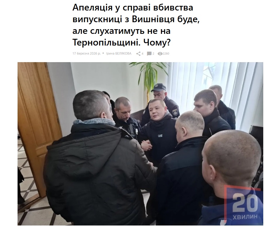 Іноді маркує водяними знаками свої авторські фото і відео і “20 хвилин”. Медіа робить це, коли йдеться про ексклюзивні матеріали, як, наприклад, у випадку судів у справі вбивства випускниці з Тернопільщини. Хоча авторські зображення в авторських текстах на сайті часто не мають підписів.