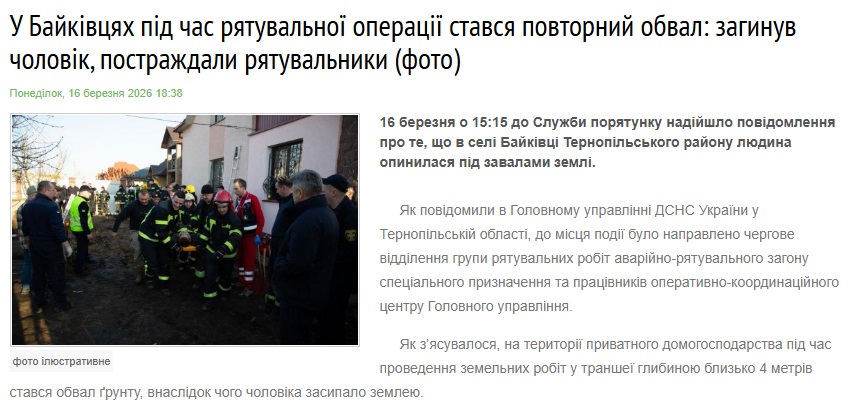 Цікаво, що у матеріалі про обвал ґрунту на Тернопільщині, внаслідок якого загинув юнак і засипало працівників ДСНС, які намагалися його врятувати, на “Тернополянах” вказали, що фото ілюстративне, попри те, що воно марковане пресслужбою і зроблене на місці події, хоч водяний знак і злився з тлом. Загалом же на “Тернополянах” було 16 новин, де фото мали вказане джерело — все це водяні знаки пресслужб.