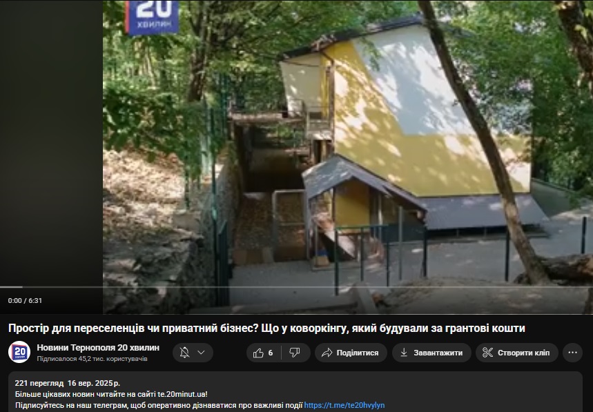 Найсвіжішим на каналі “20 хвилин” є розслідувальний матеріал про коворкінг-центр. Скрин: YouTube-канал “20 хвилин”