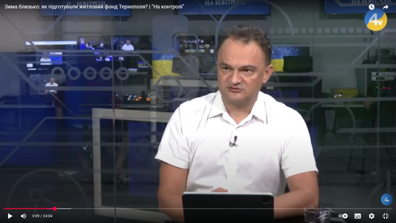 Заступник міського голови Тернополя Владислав Стемковський у програмі “На контролі” розповідає про ситуацію із ЖКГ. Скрин: YouTube-канал TV-4